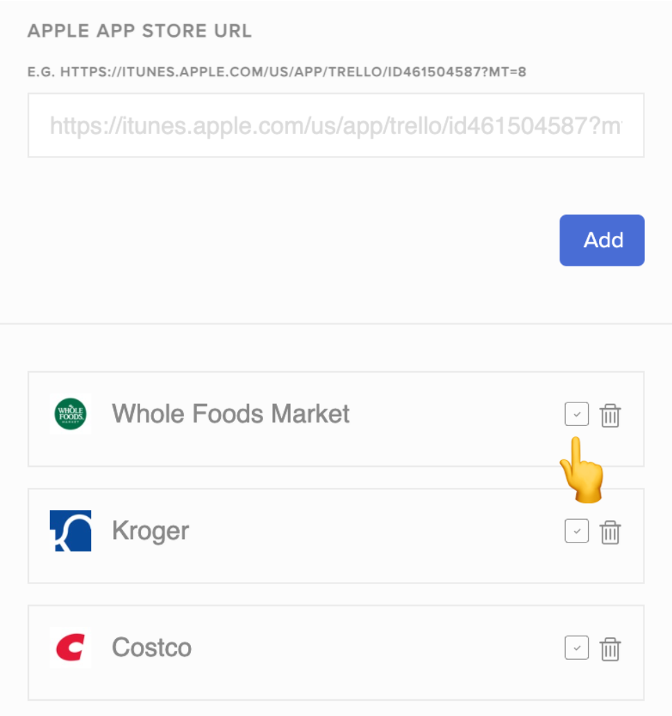 • To remove an App Store Integration, click the Remove icon next to the name of the app.