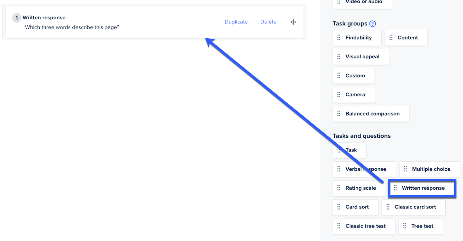 Find metric questions, like multiple choice questions, rating scale questions, and written response questions, in your test plan builder. Some benefits of using metrics questions include:
