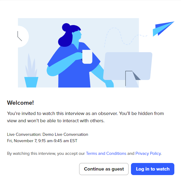 - Hidden observers will be able to watch the interview as a live stream, but they won't be visible to those participating in the interview, nor will they be able to interact with anyone in the session.