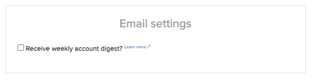 - In the Email settings section, uncheck the Receive weekly account digest? box.