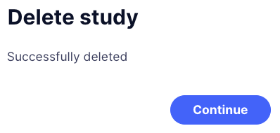 - In the Delete study window, click Continue to return to the UserZoom Manager home.