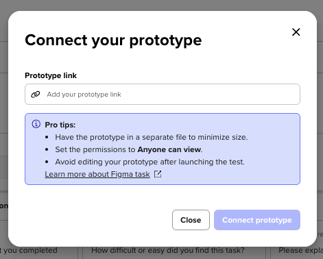 - Password-protected Figma prototypes are supported only on desktop tests.
