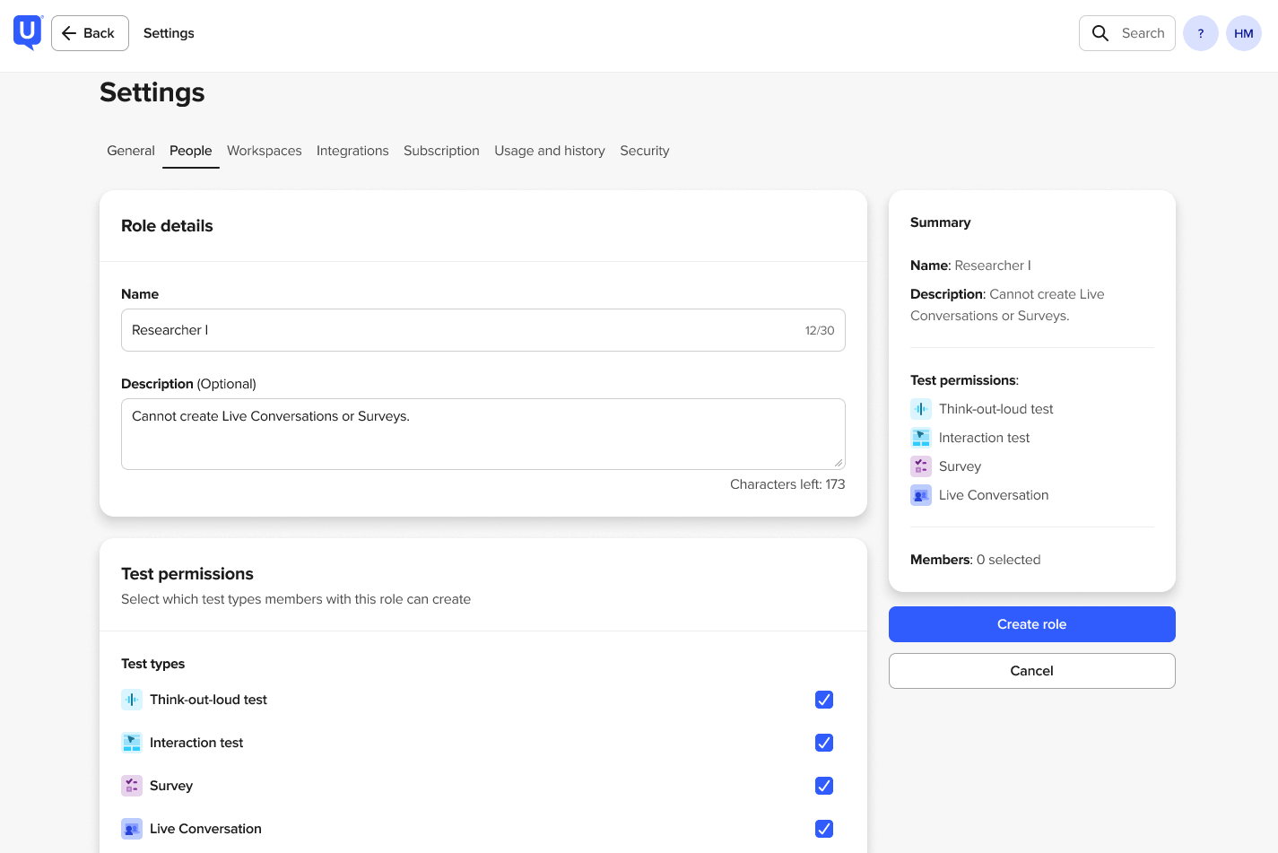 - Navigate to the Roles page from the People section.