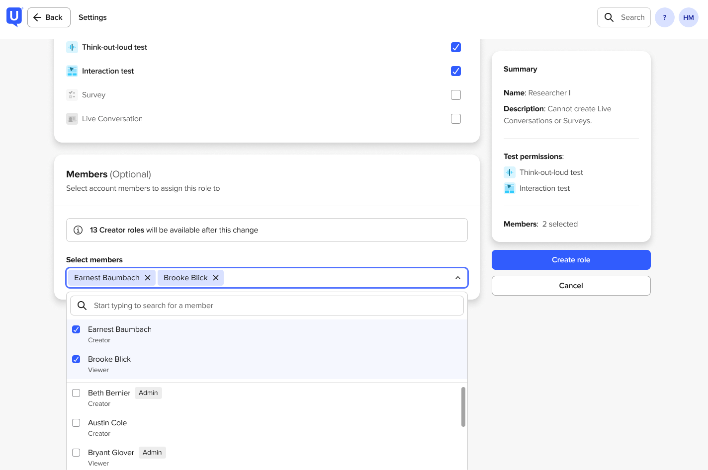 Note: Each custom role takes up a Creator seat.