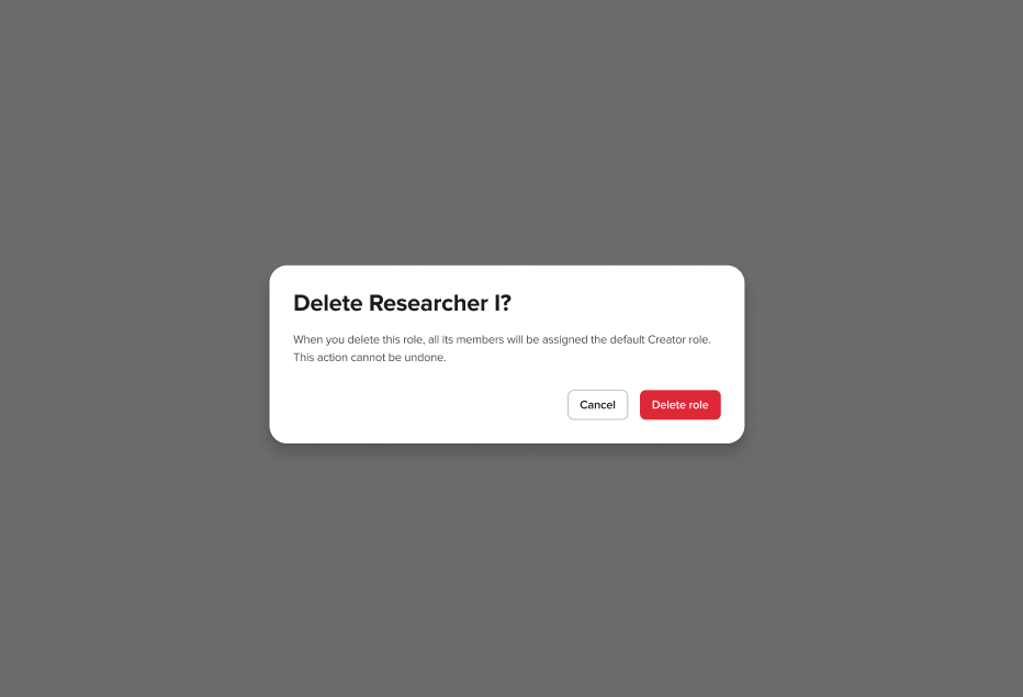 - All members assigned to that role will automatically be moved to the default Creator role.