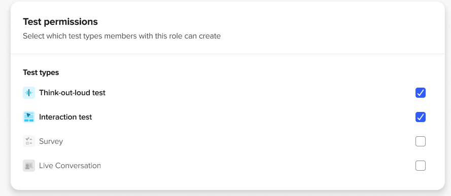 - Choose the test permissions you want members of this role to have (i.e., which test types they can launch).