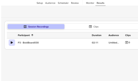 After your session is complete, you can review recordings and export session data from the Results tab.