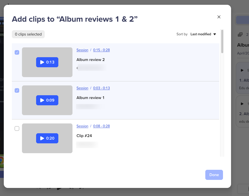- Select one or more clips you want to include.