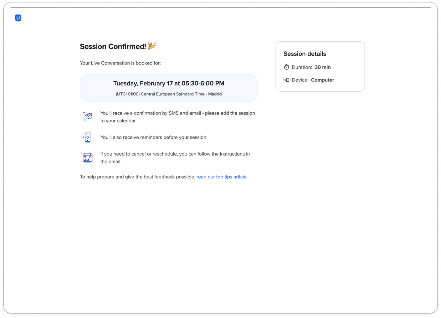 These reminders help ensure participants are prepared, reduce missed sessions, and keep Live Conversations running smoothly.