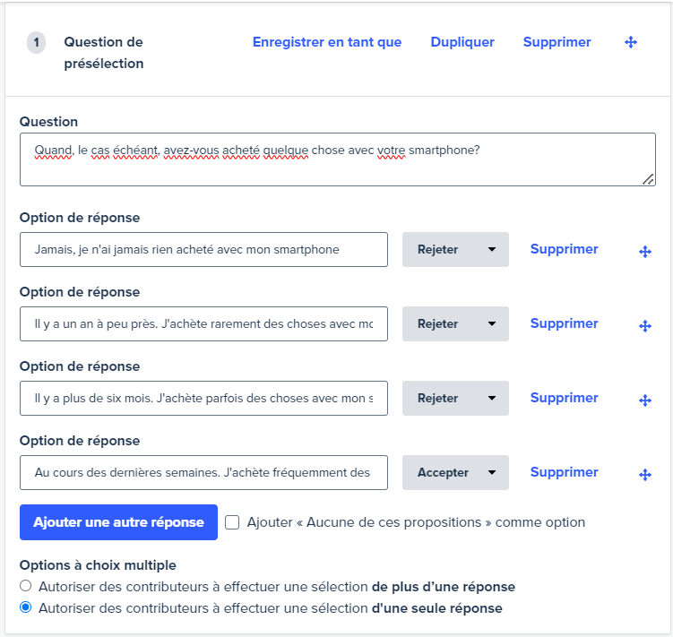 Remarque : les contributeurs verront le champ « Autres critères » avant de répondre à vos questions de présélection alors faites attention de ne pas divulguerde réponses dans ce champ.