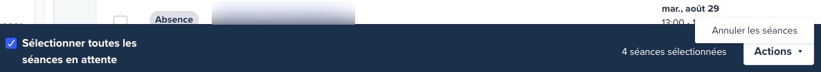 Oui tu peux annuler une session programmée. Dans la mesure du possible, nous te demandons de donner un préavis de 24 heures aux contributeurs avant d'annuler la session prévue. Tu verras l'option pour annuler une prochaine session sur ton tableau de bord. Tu peux aussi annuler toutes les sessions en attente en sélectionnant cette option dans le menu déroulant Actions.